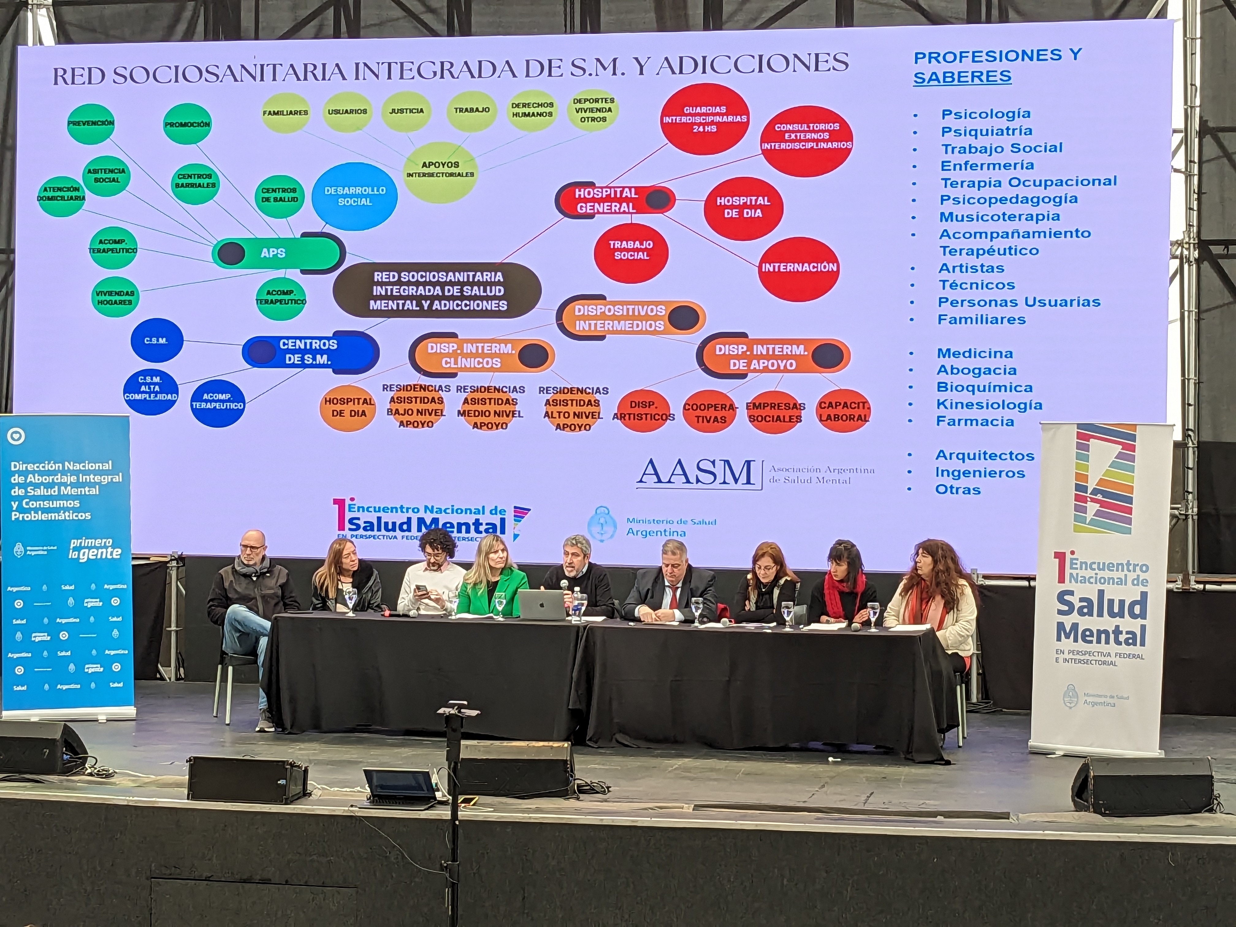Organizado por la Dirección Nacional de Abordaje Integral de Salud Mental y Consumos Problemáticos, los días 5 y 6 de septiembre del 2023 se realizó el Primer Encuentro Nacional de Salud Mental con perspectiva federal e intersectorial en el predio de Tecnópolis. Durante dos días convocó a autoridades, especialistas, referentes y trabajadores de todo el país para avanzar en la plena implementación de la Ley Nacional 26.657.
