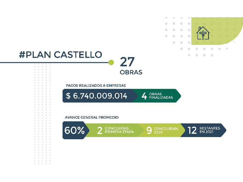 Hasta el momento, la provincia pagó $6.740.009.014 a las distintas empresas que llevan adelante los trabajos de las obras centrales del Castello y las transferencias están al día. Además de las ya finalizadas, once obras culminarán este año y se prevé que estén todas terminadas para 2021.