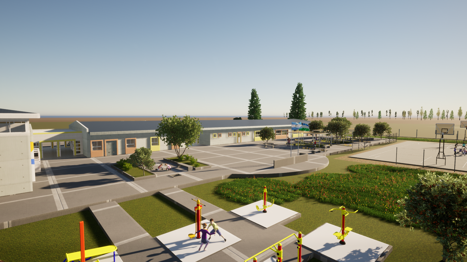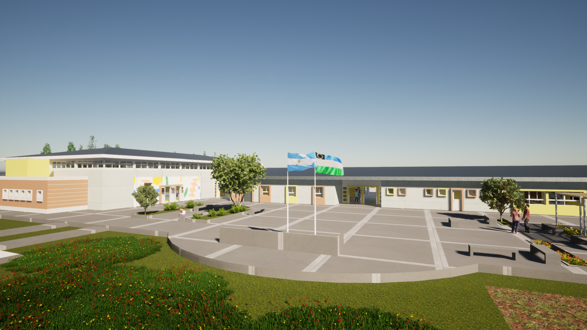 Asimismo, el proyecto contempla la construcción de un playón deportivo y la instalación de aparatos de gimnasia, fomentando la actividad física. También se ejecutarán patios de formación, áreas de reunión y esparcimiento, y trabajos de forestación e iluminación exterior para garantizar la seguridad y habitabilidad del predio.