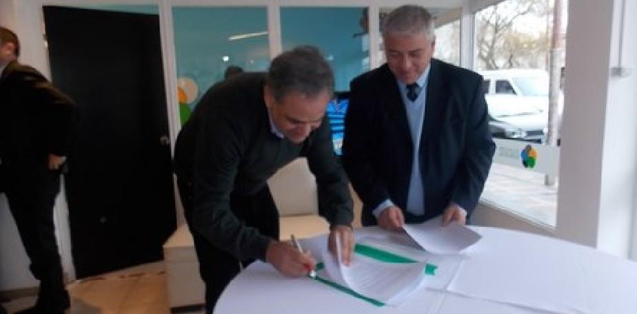 Firmaron hoy el convenio para la ejecución de obras de reparación y recuperación de la infraestructura hidráulica del Canal Principal del Sistema de Riego Salto Andersen en Río Colorado.