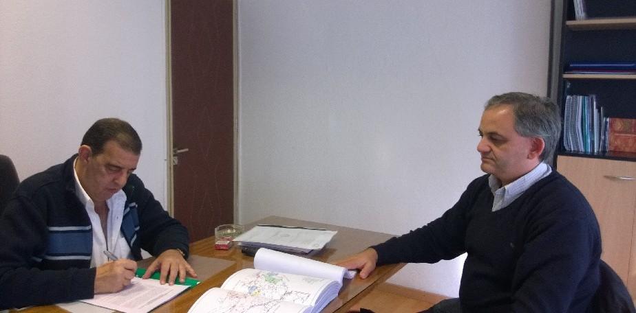 El ministro de Agricultura, Ganadería y Pesca, Haroldo Lebed, recibió de manos del presidente de Vialidad Rionegrina, José Luis Guerra, los proyectos de reparación de caminos rurales del programa de Recuperación Productiva Post- Emergencia.